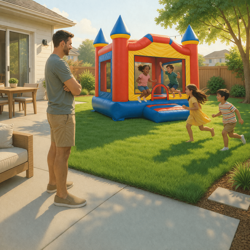 The best setup areas are clean, clear, and free from obstacles that could interfere with the inflatable or the activity around it. Trees, low branches, fencing, yard décor, and other nearby objects can all affect placement. The same is true for tight spaces that leave little room around the entrance or exit. A safe inflatable setup is not about squeezing the unit into whatever corner is available. It is about choosing a space that gives the inflatable room to function the way it is supposed to.
